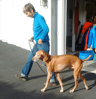 | These photos are of Buzz getting chemotherapy. The drug is selected not only for its strength, but for its requirements for the dog - as in, if the dog has to be stationary for 3 hours to get it, it's probably not going to work out for some dogs. The idea is to strike a balance between the efficacy of the drug and the emotional comfort of the dog. I found all the vets and techs involved in Buzz's treatment totally admirable and empathetic. |