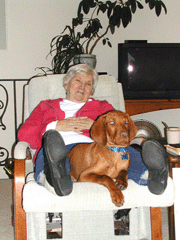 I don't remember why, but we stuffed these Autumn leaves in his collar and made him parade around that way. Buzz was an infinitely tolerant dog. |