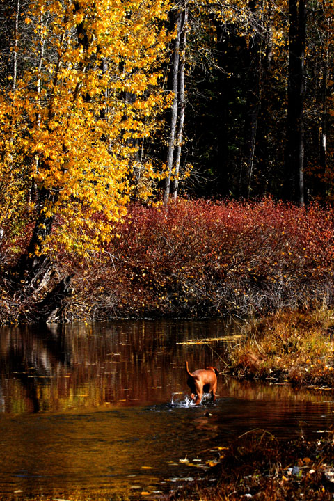 We have a couple of friends who each have beautiful and large properties in Paso Robles. We've take Buzz down to visit several times; he loves to run up and down on the hillsides. And one of the places has a creek and the other has a pond: Buzz's idea of heaven. Oh yeah, and he got tracked by a drone, which he thought was pretty spooky.