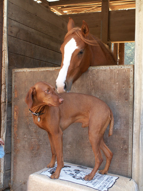 | I guess the horses came next. The first photo is of Ali, my old mare. The next is Zephyr, who was about Buzz's age, and finally, there's Sunny, who Buzz has had lots of adventures with - we rode together at Ft Ord - with Julie, his first kid contact. Next was Julie's little sister, Jade. |