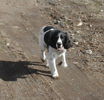 | Shameless and Geraldo tried to lead Buzz out on great adventures, but he declined to go very far without us, although he did make it to the property line. We (Wayne, me, Buzz, Shameless and Geraldo) took several short walks around the hilltop during our stay. Buzz flushed his first pheasant and, I must admit, it scared the daylights out of all of us. |