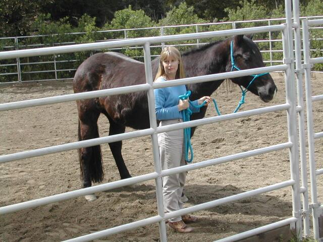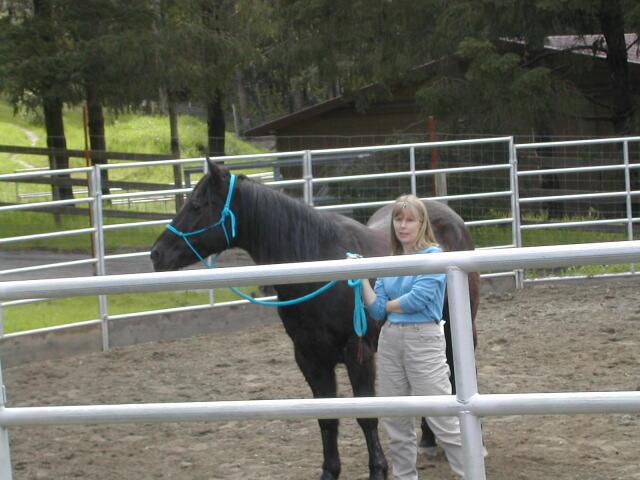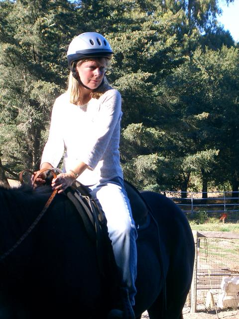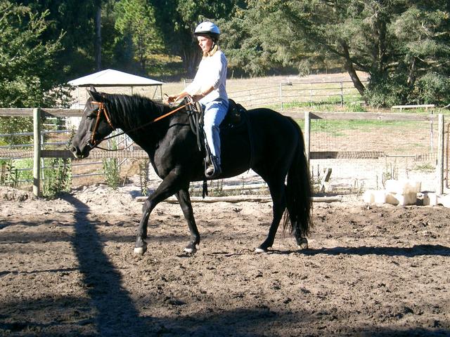 Tuffy and Betsy came out to help Al get over her tailgaing problem, again. Tuffy was, as usual, a complete gentleman. I didn't get any photos, but after we had warmed up in the arena, we took Tuffy, Ms L, Kharina and Ali out on the trail. Tuffy was a very steady platform for Betsy to squirt Al right between the eyes when she got too nervous.
