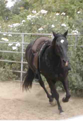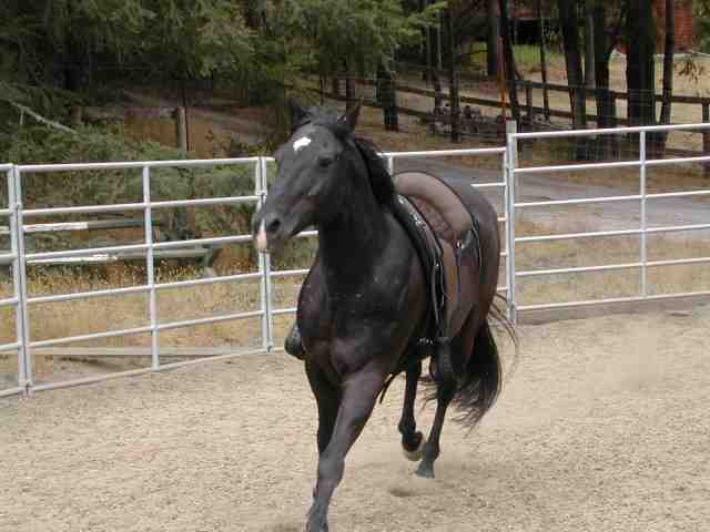 Tuffy and Betsy were taking a lesson in the round pen, working on changing gaits, so I was able to get some pictures of Tuffy feeling good and moving fast.