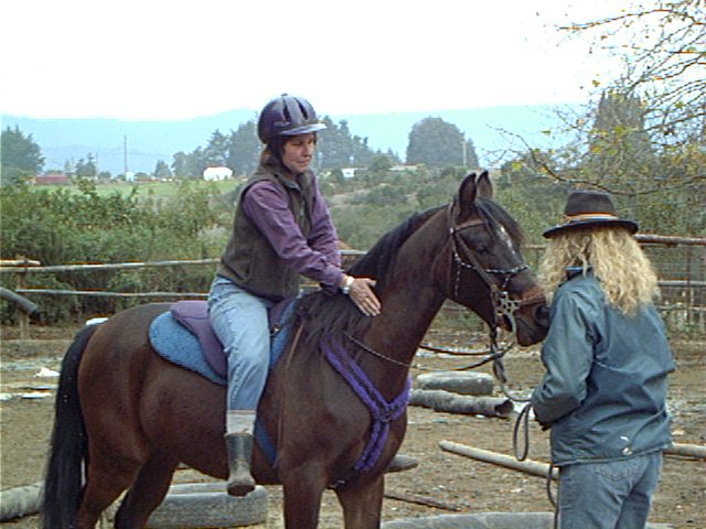 with a saddle cloth, gently leaned on him for awhile, then quietly climbed aboard. I don't think he noticed. Judy