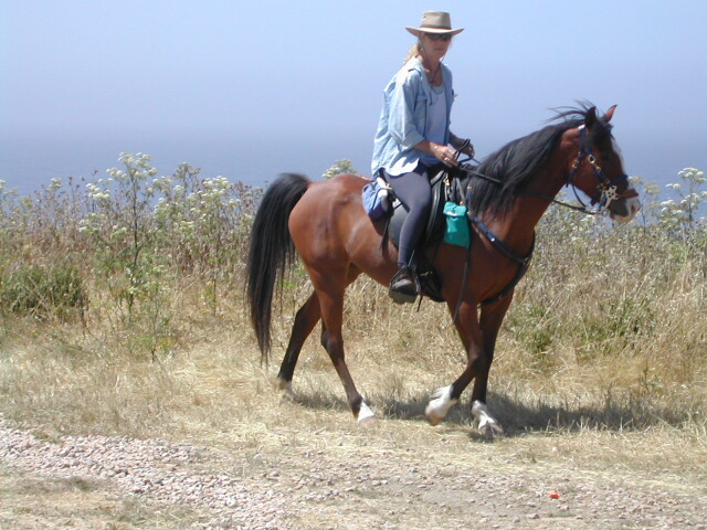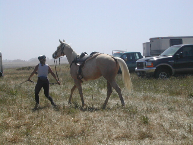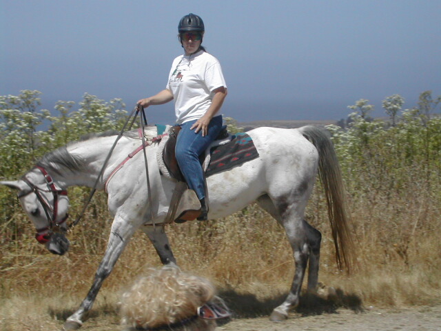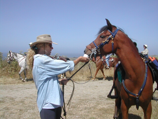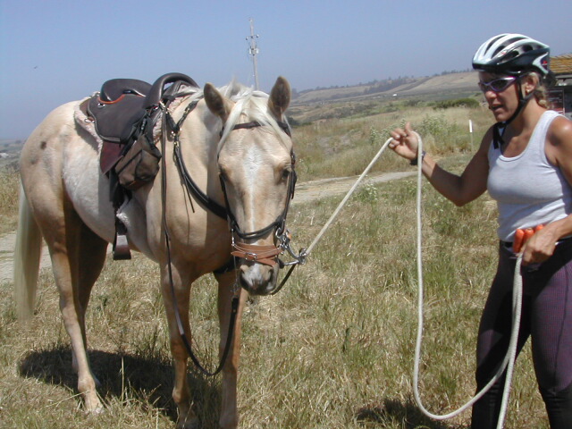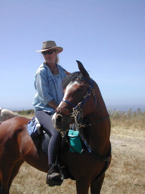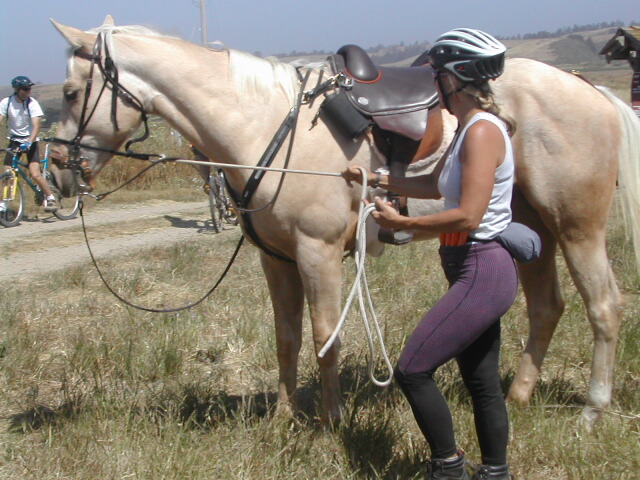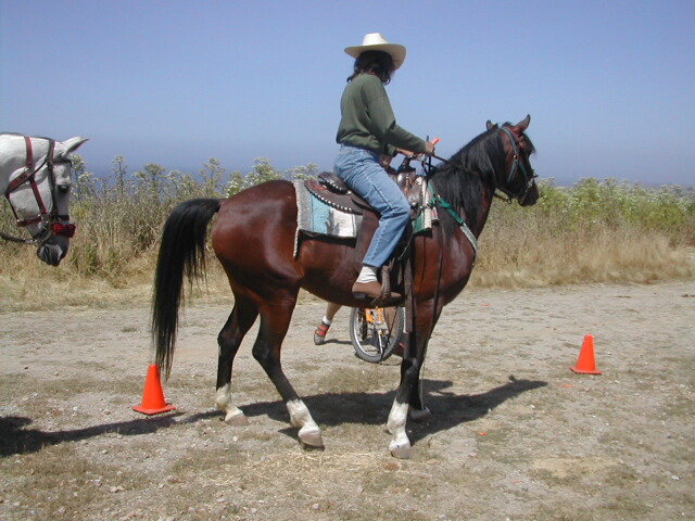 I concentrated on taking pictures of the crowd from the ranch mostly: Cathy and Bow, Trisha and Nabi, Bonnie and Vannie, Judy and Nadia. I also threw in a few pictures of Nancy Twight riding and ponying a little bay mare that is the full sister of her gelding, Tonto, who has completed Tevis several times. My husband was there, too, as a mountain bikers, so there are a couple of pictures of Ali and I, as well. Brave Al and I rode from The Ranch, so the first pictures is our first sighting of our goal. Judy and Nadia rode back to The Ranch with us, and the last picture is proof positive that the plan worked: it's of Nadia holding up a biker on the entrance to Enchanted Loop until he gave her a carrot!