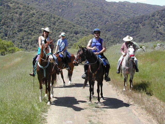 Last Friday, Nancy, Joaquin, Judy, Mike and I went to Henry Coe State Park to ride our horses and see the wild flowers. Henry Coe is a huge park, 81,000 acres according to the rangers, with very few access points and amenities. In addition, during summer and fall, it's hotter than blue blazes. As a result, there are very few people there and it's always a great adventure to go.