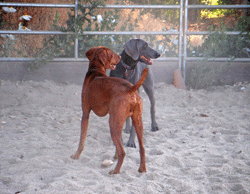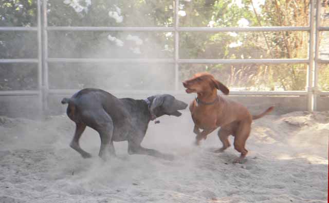 Someone brought a Weimeraner up to the Ranch and he was running wild. Someone suggested that we take the newbie and Buzz down to the arena and let them burn off some steam. I guess that's sand dust you can see, but it *could* be steam!