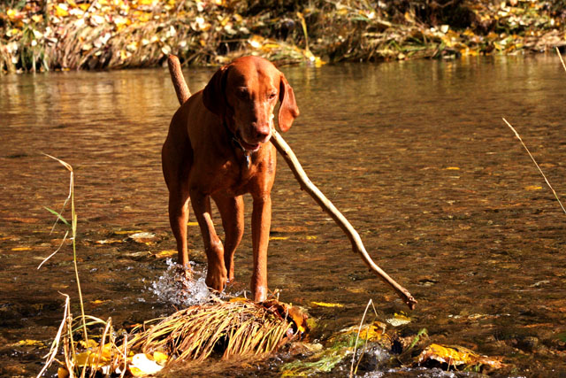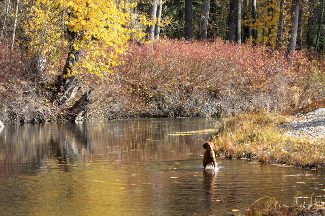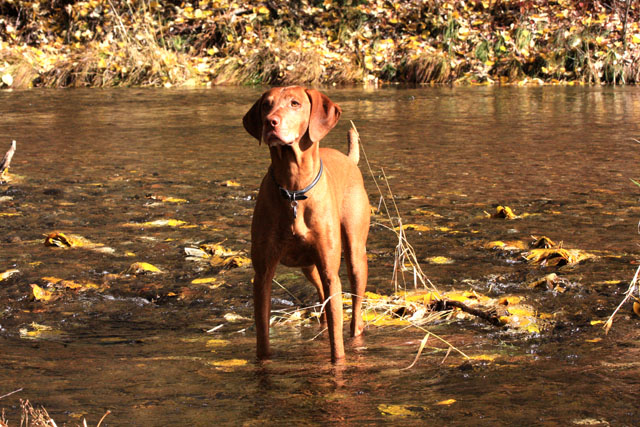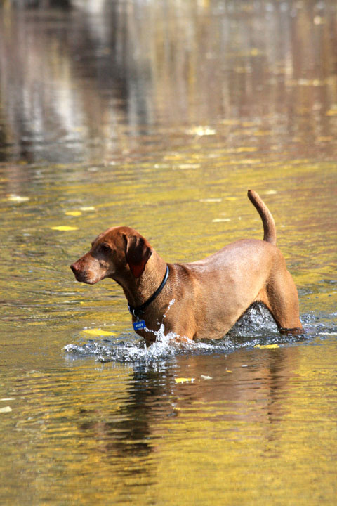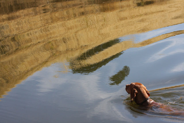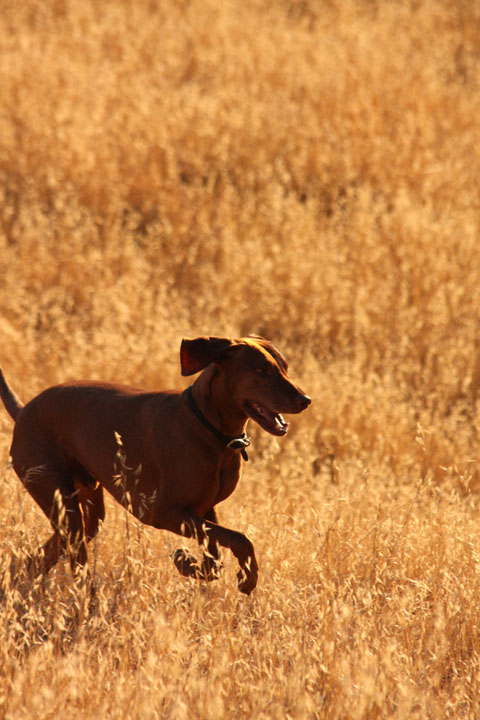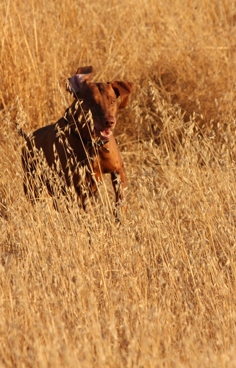 We have a couple of friends who each have beautiful and large properties in Paso Robles. We've take Buzz down to visit several times; he loves to run up and down on the hillsides. And one of the places has a creek and the other has a pond: Buzz's idea of heaven. Oh yeah, and he got tracked by a drone, which he thought was pretty spooky.