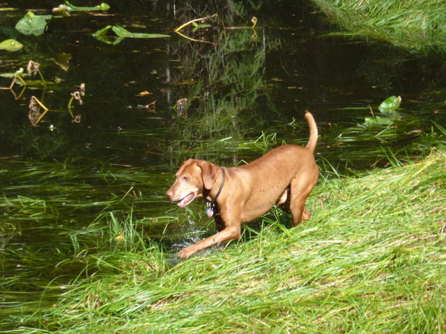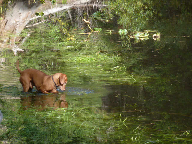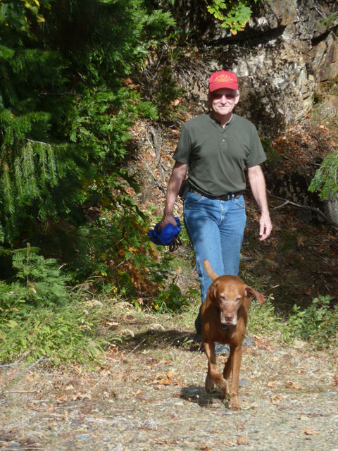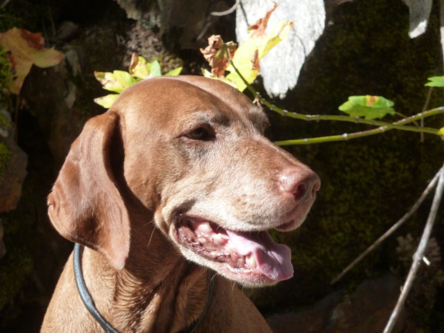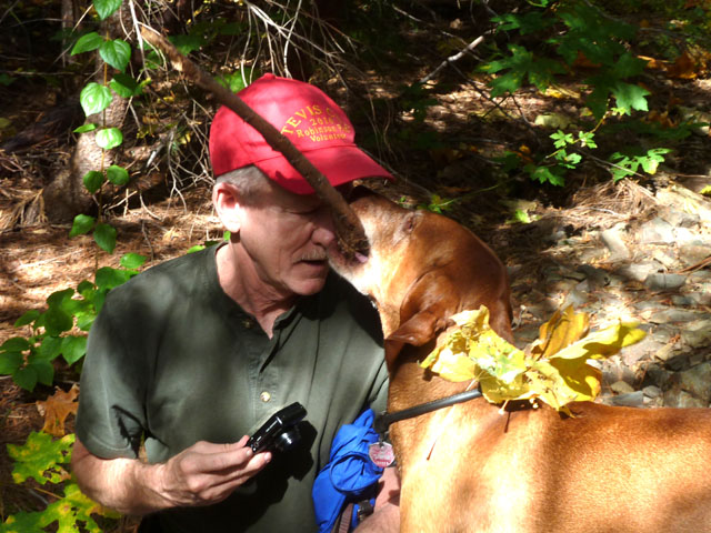 | We took a trip up to Reno in October of 2011 and pulled off just short of the summit, looking for a place to let Buzz stretch his legs a little. In fact, we found a beautiful trail, complete with creek and pond for him and Fall foliage for us. We didn't get to Reno til late. |