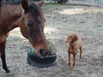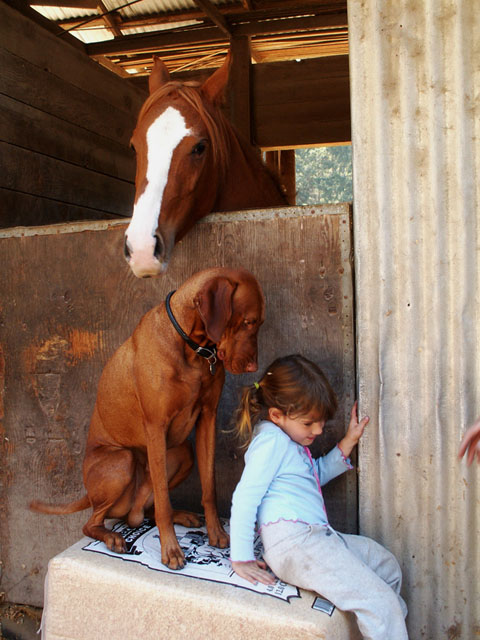 | I guess the horses came next. The first photo is of Ali, my old mare. The next is Zephyr, who was about Buzz's age, and finally, there's Sunny, who Buzz has had lots of adventures with - we rode together at Ft Ord - with Julie, his first kid contact. Next was Julie's little sister, Jade. |