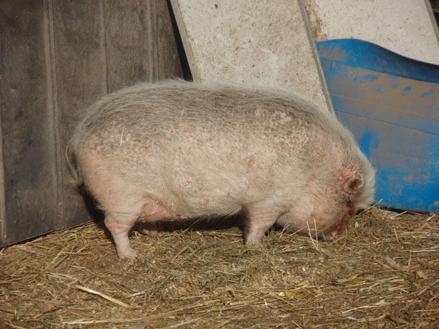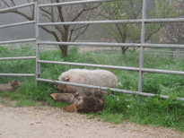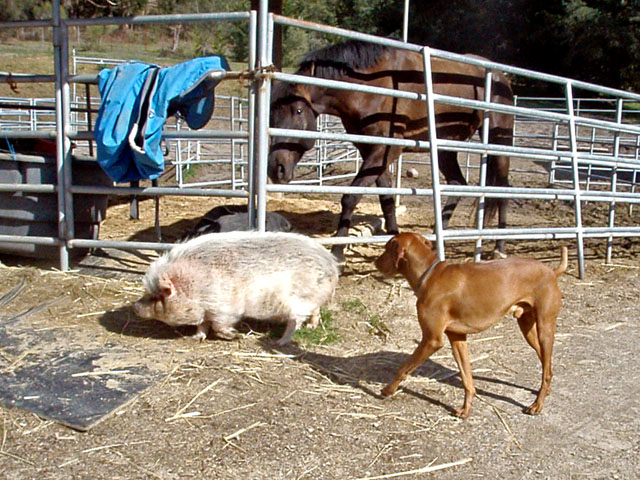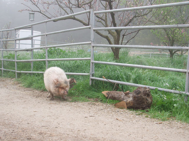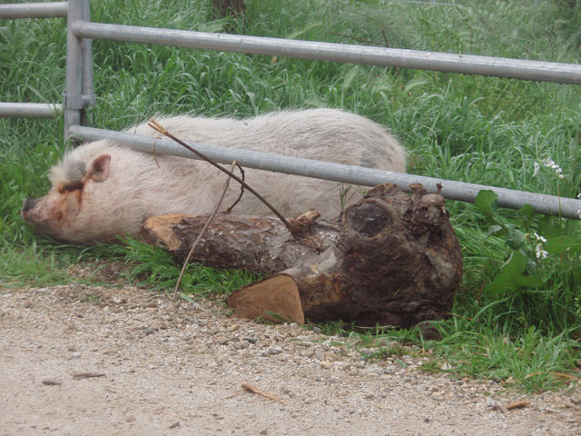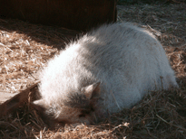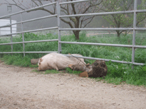 | And then there's Ivy. Ivy was a pig who loved to escape her pen, walk . . . 10 feet and lie down. Buzz and I would sometimes feed the horses in the evening and find Ivy out and we had to herd her back into her pen. Sheesh. |