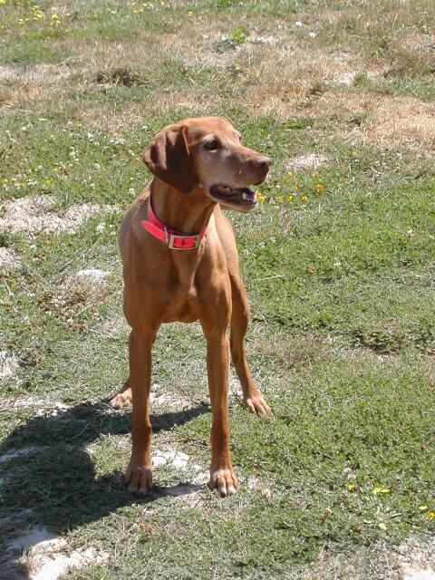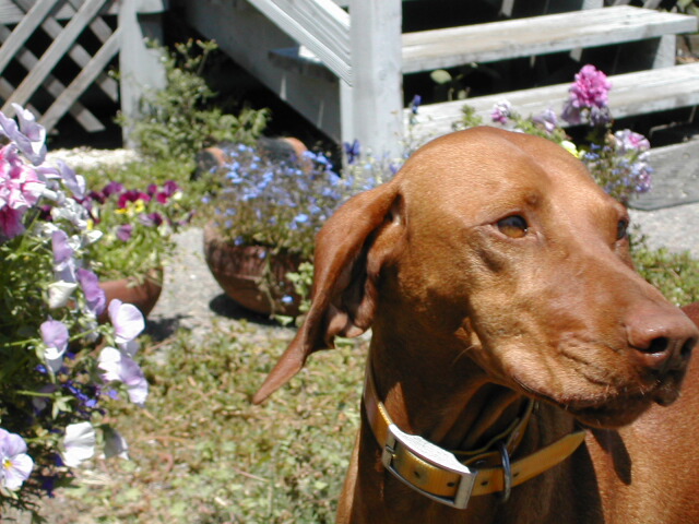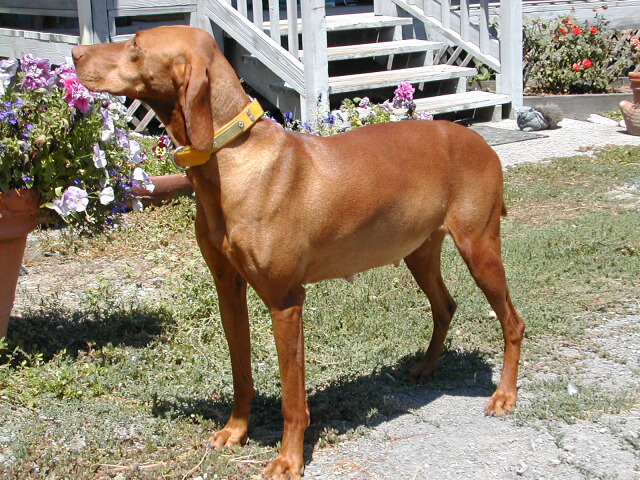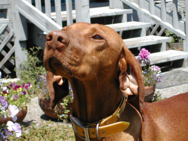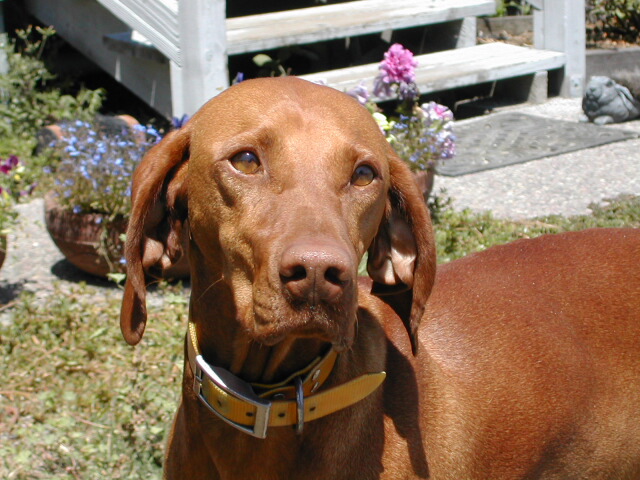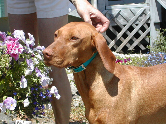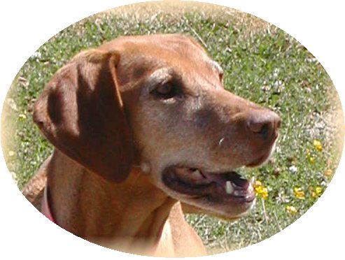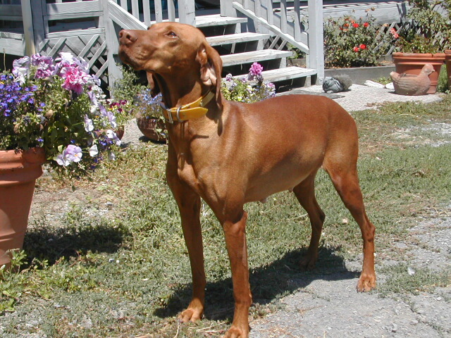 We went up to Petaluma today (August 6, 02) and "interviewed" with Marian Sears, a Vizsla breeder and owner of Csardas Vizslas. After spending three hours with Marian and her four females in residence, we decided unanimously that we would go on the list for one of her pups.