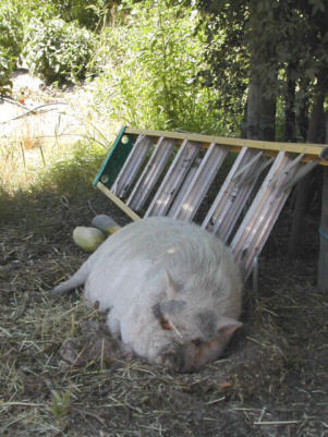 Ivy is the barn pig. She occasionally gets out and terrorizes the neighborhood, except for Doon, who fears nothing. Mostly she relaxes and eats, much like the rest of the barn residents.