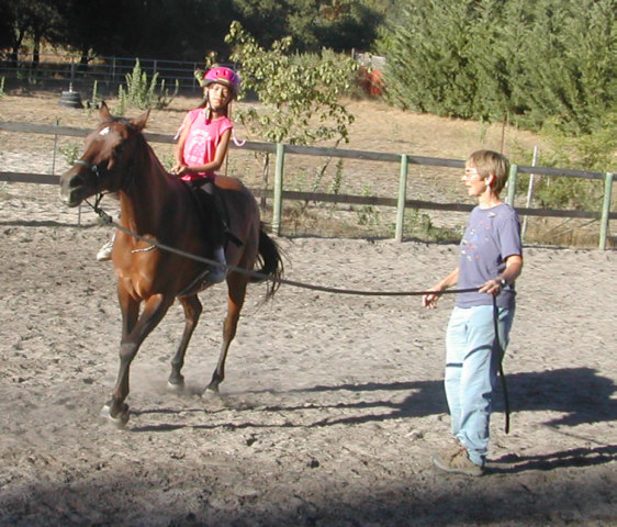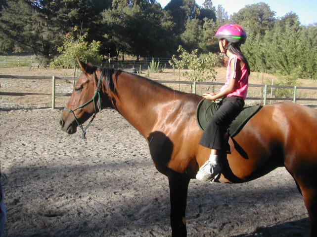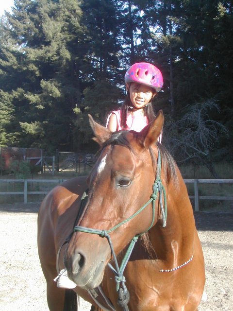 Maimai, Judy's niece visited Al. First, she got on Al's good side by making her jewelry - note the pearl necklace. Then she got me to lead Al around the arena until she got comfortable - and then the sky was the limit!