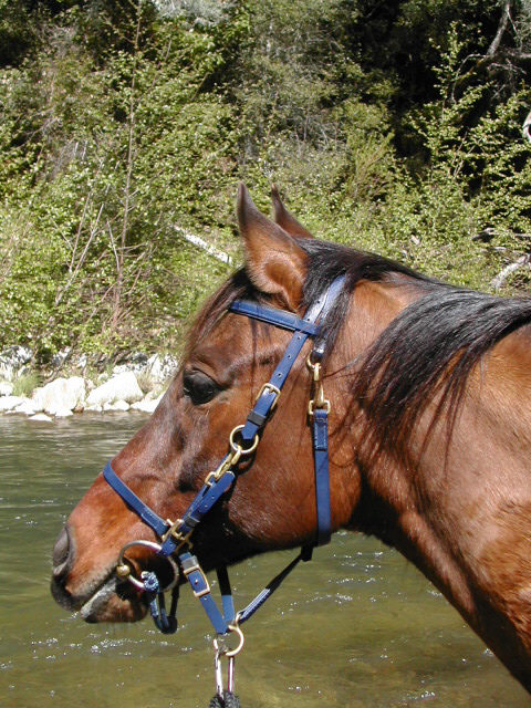We did make it to the river without any surprizes on UCONN or Pogonip, which was actually the part I, at least, was most concerned about. It was a beautiful and warm day, so the horses were really willing to drink and hang out. I think Shawn was trying to push Elias into river, but I'm not sure why. |