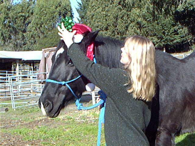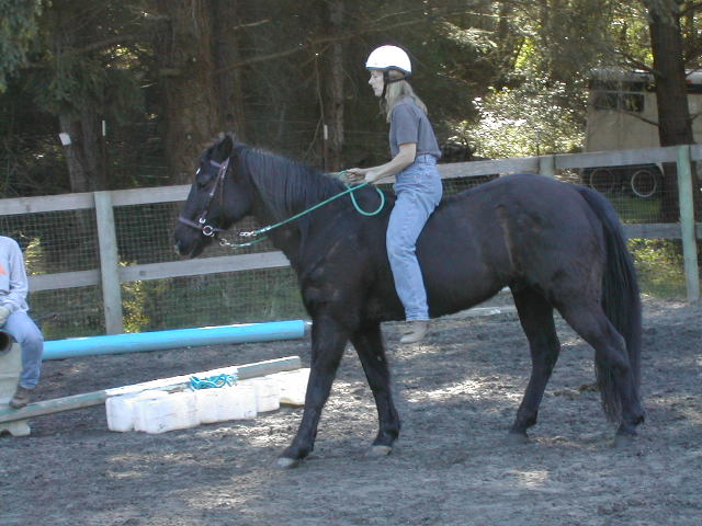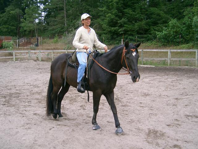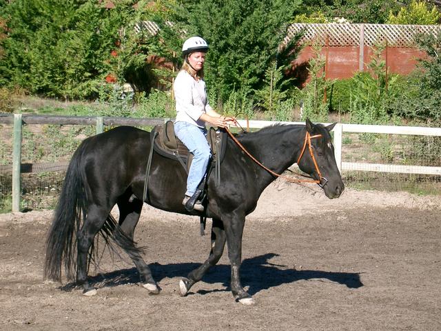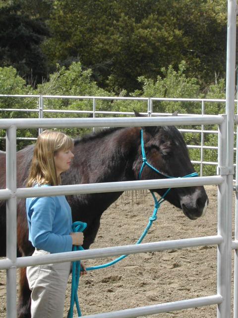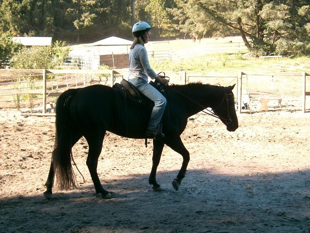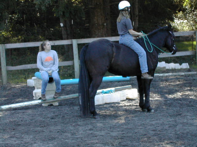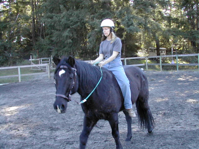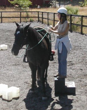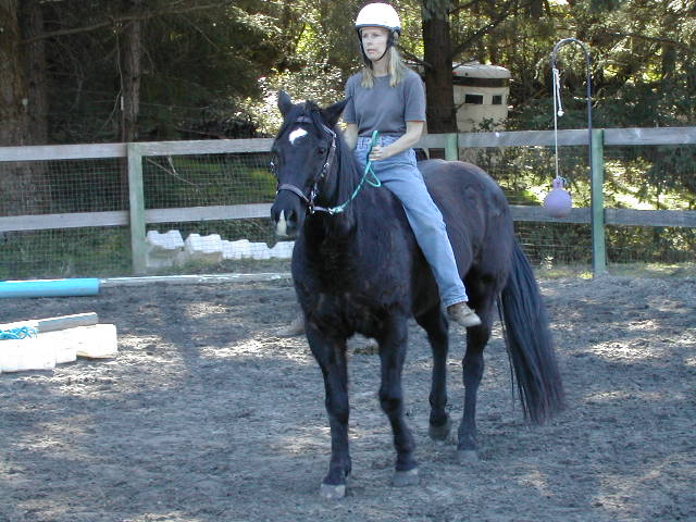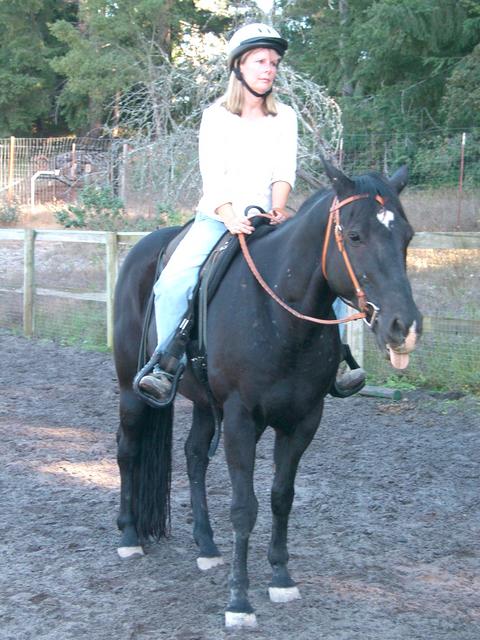 Tuffy and Betsy came out to help Al get over her tailgaing problem, again. Tuffy was, as usual, a complete gentleman. I didn't get any photos, but after we had warmed up in the arena, we took Tuffy, Ms L, Kharina and Ali out on the trail. Tuffy was a very steady platform for Betsy to squirt Al right between the eyes when she got too nervous.