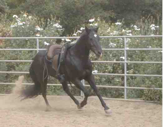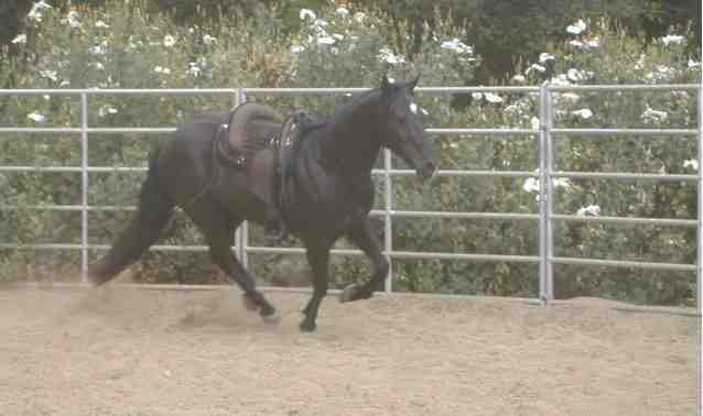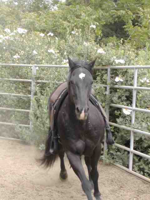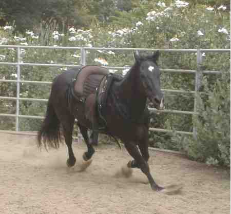 Tuffy and Betsy were taking a lesson in the round pen, working on changing gaits, so I was able to get some pictures of Tuffy feeling good and moving fast.