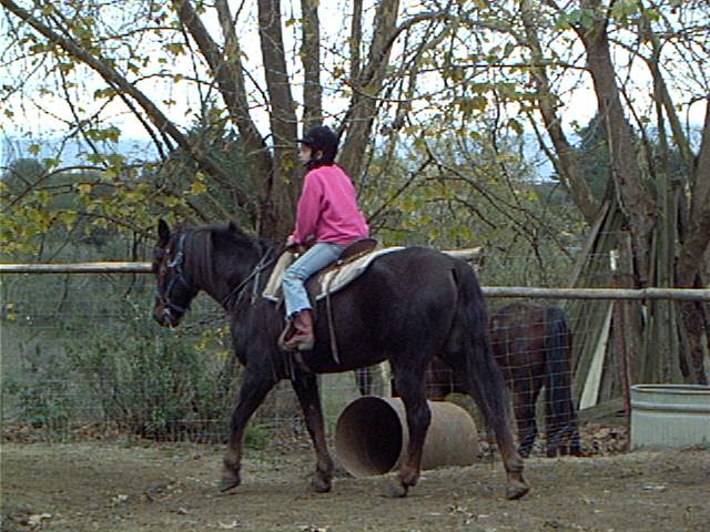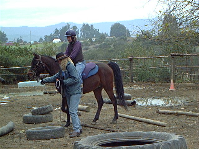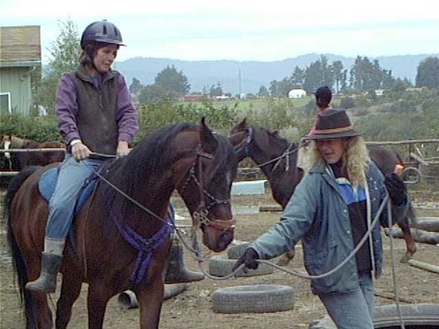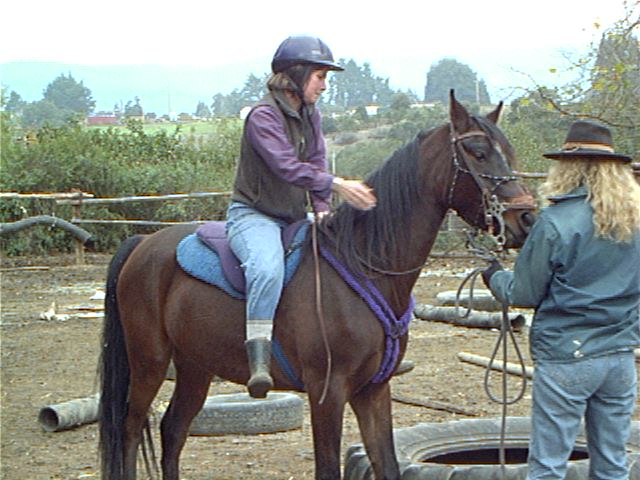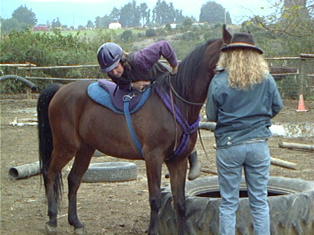 with a saddle cloth, gently leaned on him for awhile, then quietly climbed aboard. I don't think he noticed. Judy