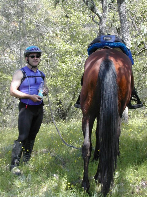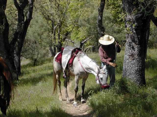After that, it was mostly downhill to home - but a very long downhill. When we started, we thought the ride would be 20 miles or, as Joaquin said "This is how far the Boys used to ride for a beer, when they went into Virginia City from the Ponderosa." It actually turned out to be a little longer and I'm not sure we all had appreciated how much climbing there would be. Judy, Mike and I all hand walked out horses for significant amounts of the last 8 miles. But what a great place to take a walk with your horse!