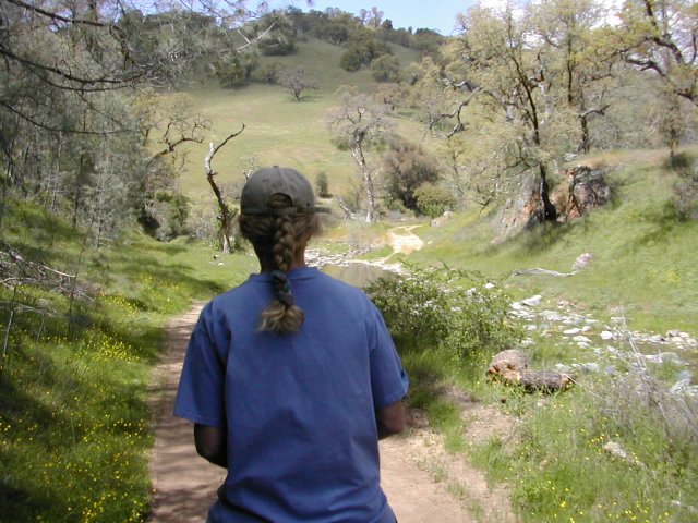 After we got through the gate, we had about 7 miles of fire road up a serious hill, but the views kept at least the human component of the expedition distracted: lots of live oak and meadows. As you can see, we were a pretty happy bunch. Joaquin was a particularly free spirit; he and Cara took the path less travelled at about every opportunity.